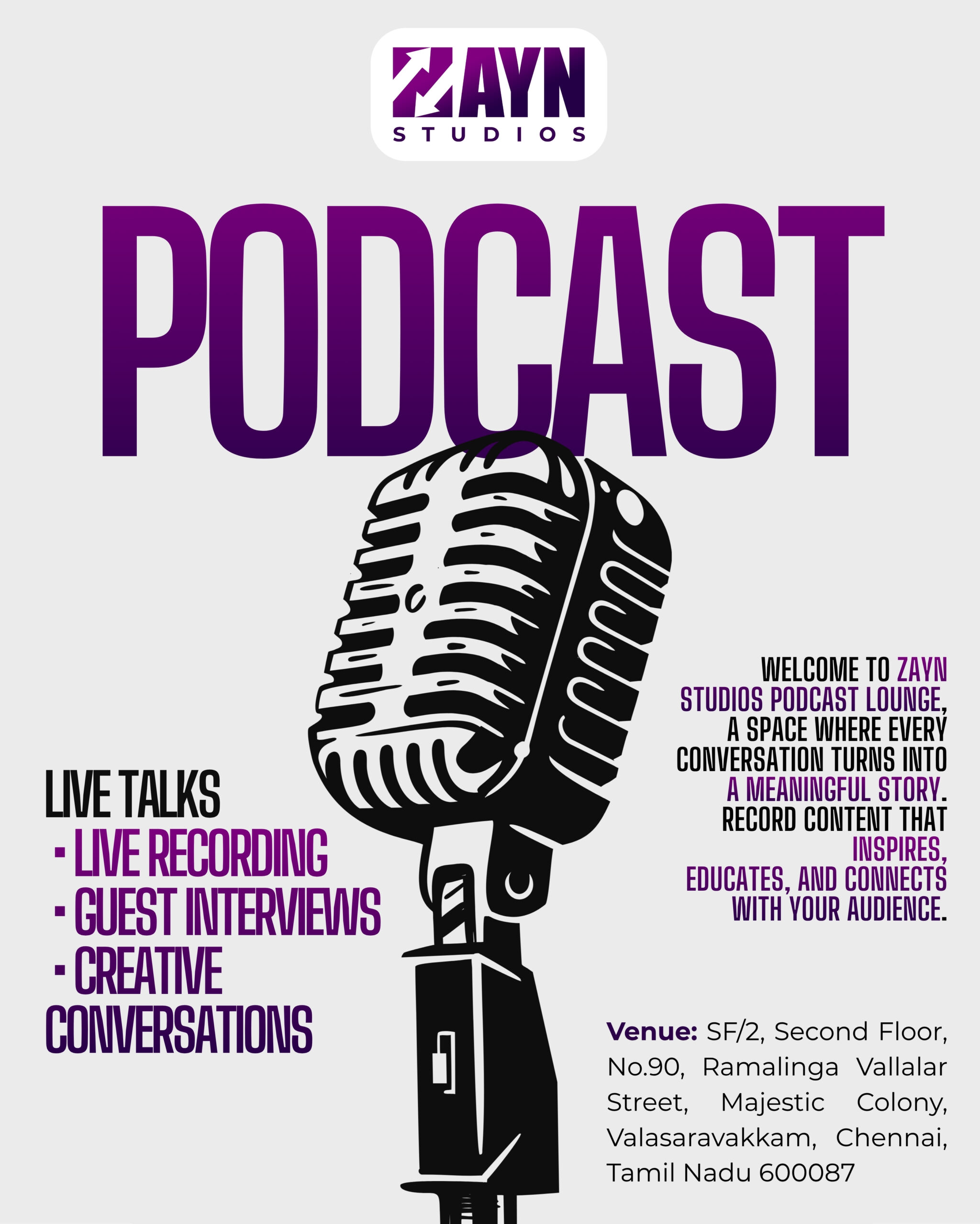 ©2025 Zayn Studio | Podcast Recording, Video Production & Content Studio, Chennai